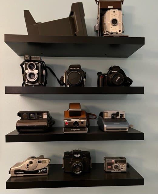 This is my daughter’s collection of vintage cameras. She majored in photography at MICA (Maryland Institute College of Art) and before that she attended an arts high school where she studied visual arts and specifically photography. She was the kind of gal who never went anywhere without her camera in tow. Her camera became emblematic of who she was and how she navigated her world--as an artist, a documentarian and an observer of the ordinary, yet profound moments in life.
